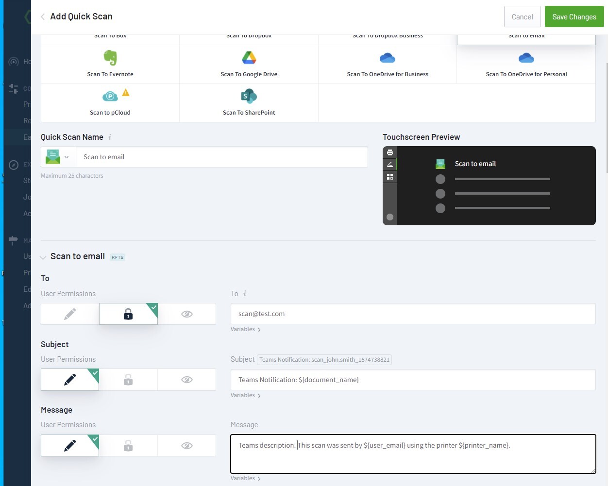 Define the remaining settings for Color, Duplex etc and Save the Scan Action -