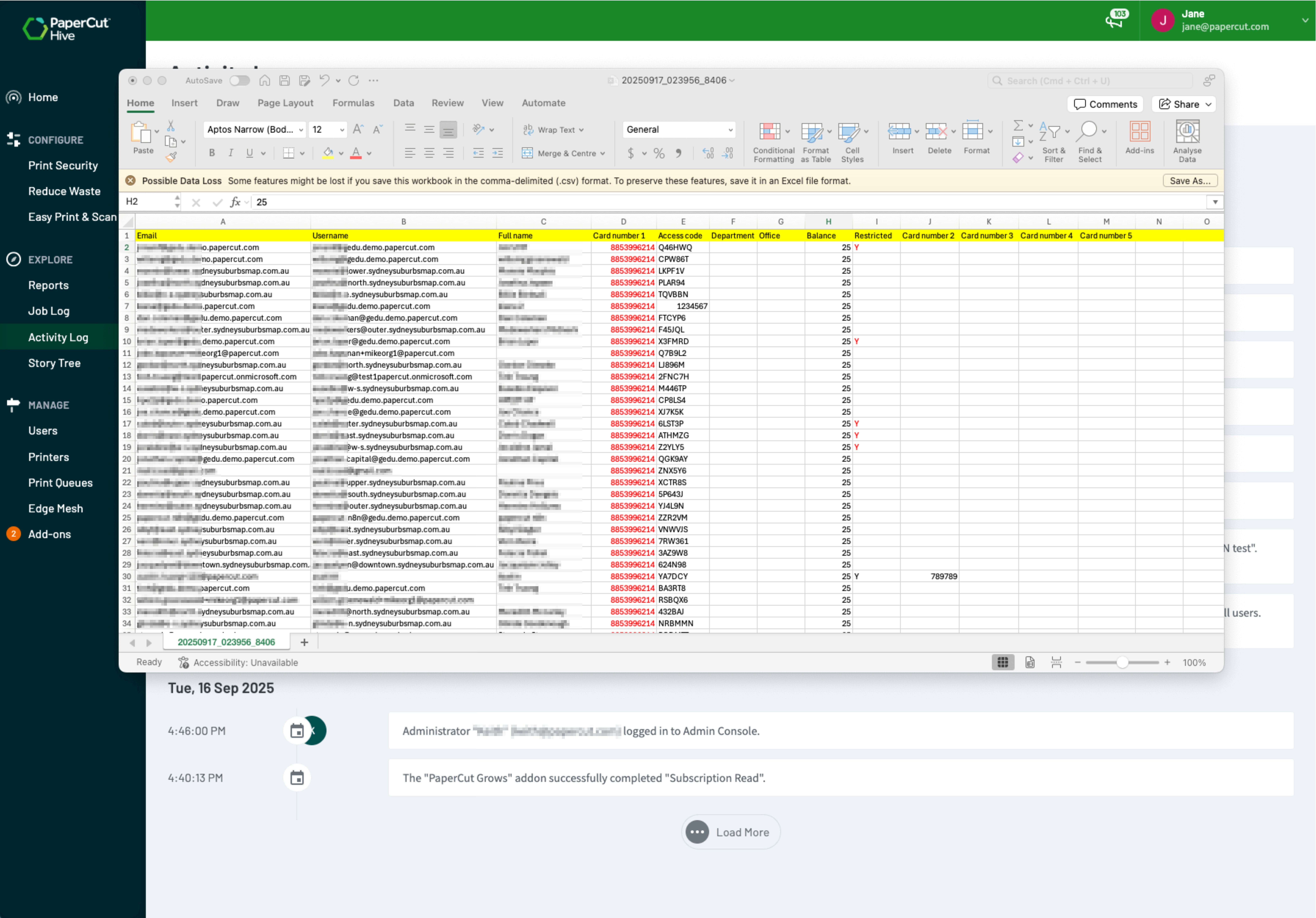 - Export your existing PaperCut Hive user list (existing PaperCut Hive customers)