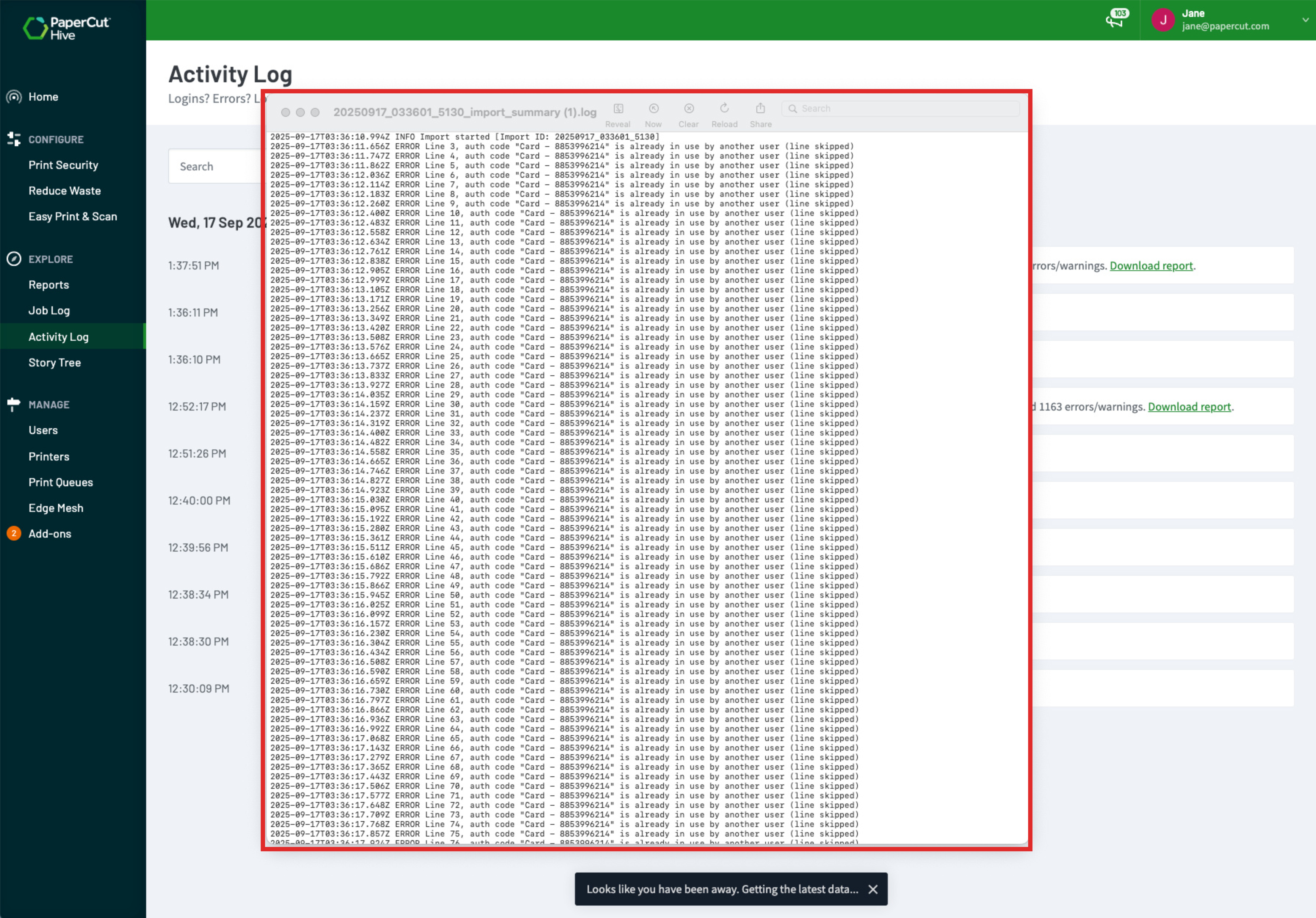 The User Data Import Tool is a new, built-in feature in PaperCut Hive and Pocket designed to help admins and resellers easily import user data, particularly during migrations from PaperCut NG/MF or other systems. This tool gives admins greater control and visibility when adding and updating users, reducing setup time and improving accuracy during onboarding.