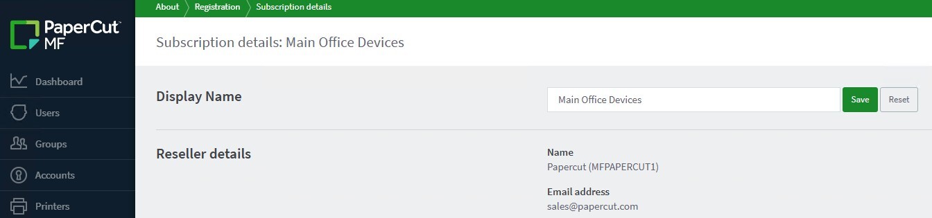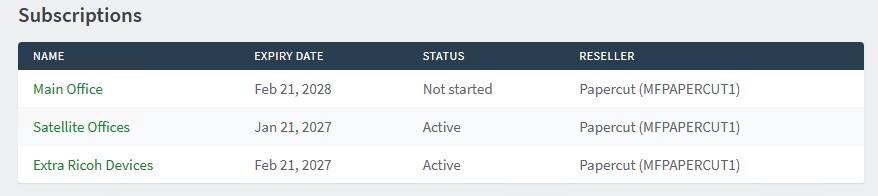 As of PaperCut version 25.0.8, you can now assign custom Friendly Labels to individual subscriptions. This feature is designed to help System Administrators and Reseller Partners easily differentiate between multiple subscriptions within a single environment.